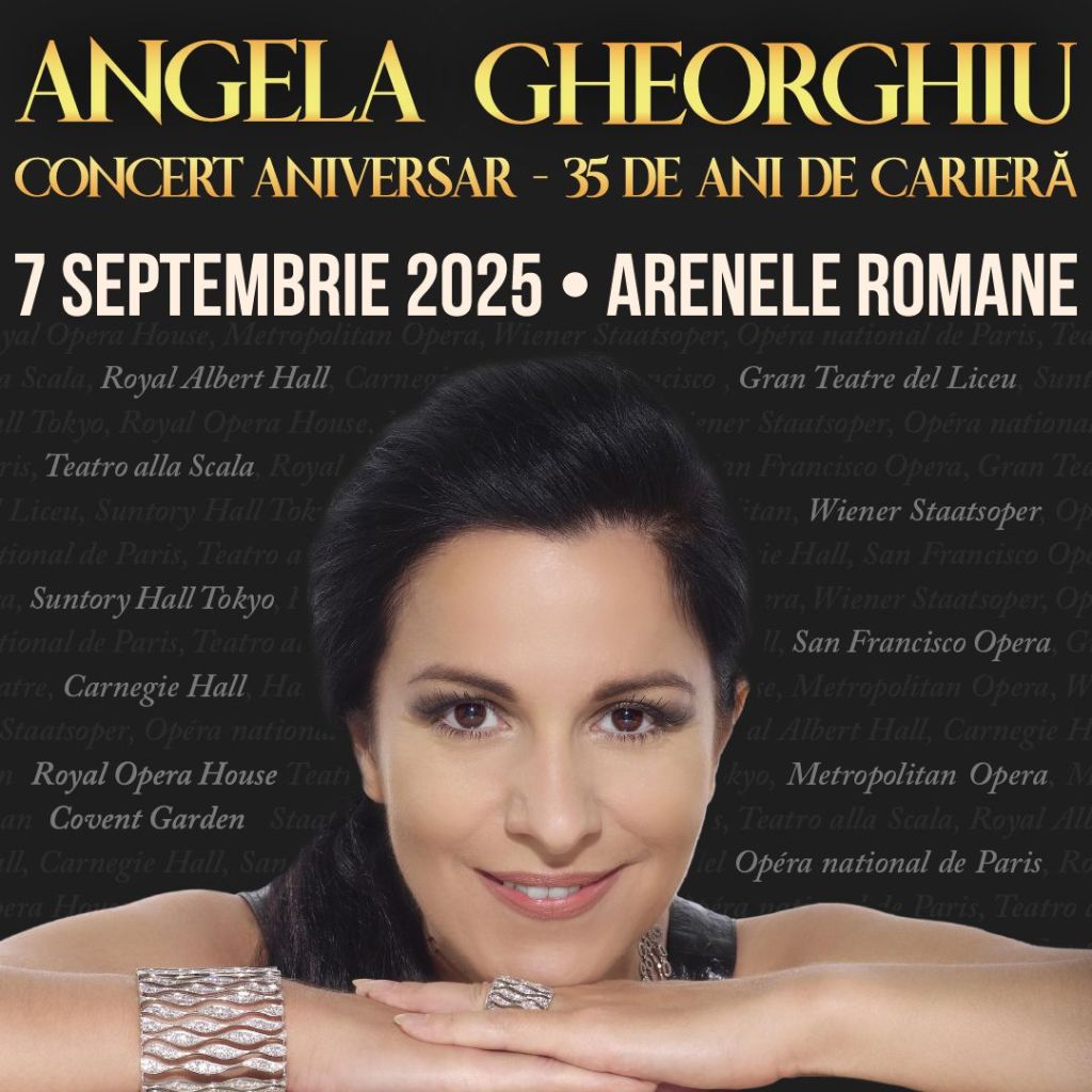 Una dintre cele mai strălucitoare voci ale operei mondiale, soprana Angela Gheorghiu, celebrează 35 de ani de carieră printr-un concert aniversar grandios, ce va avea loc pe 7 septembrie 2025, la Arenele Romane din București.