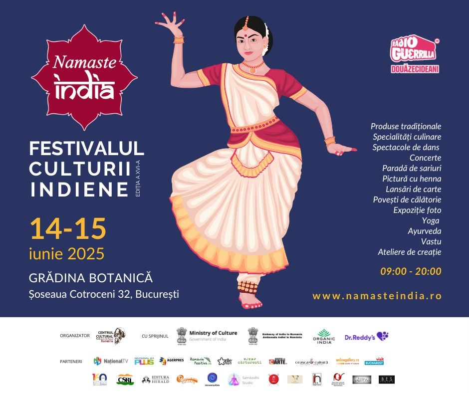 Cu invitați din India și România, ce vor susține peste 50 de activități, ediția a 16-a a Festivalului “Namaste India” promite să fie cea mai amplă și mai complexă de până acum. Pentru două zile, între 14 și 15 iunie 2025, Grădina Botanică din București devine un spațiu viu de întâlnire între lumi: arta și tradițiile ancestrale ale Indiei prind contur în pași de dans, muzică, sunete sacre, miresme de condimente, costume tradiționale și practici ancestrale.