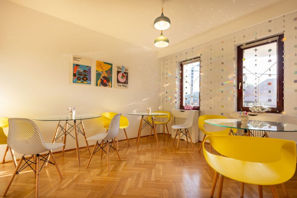 🎨 Spațiul este decorat cu stil, combinând elemente whimsy cu confort. Designul jucăuș, culorile calde și materialele prietenoase creează un mediu care stimulează curiozitatea și inspirația, atât pentru cei mici, cât și pentru cei mari.